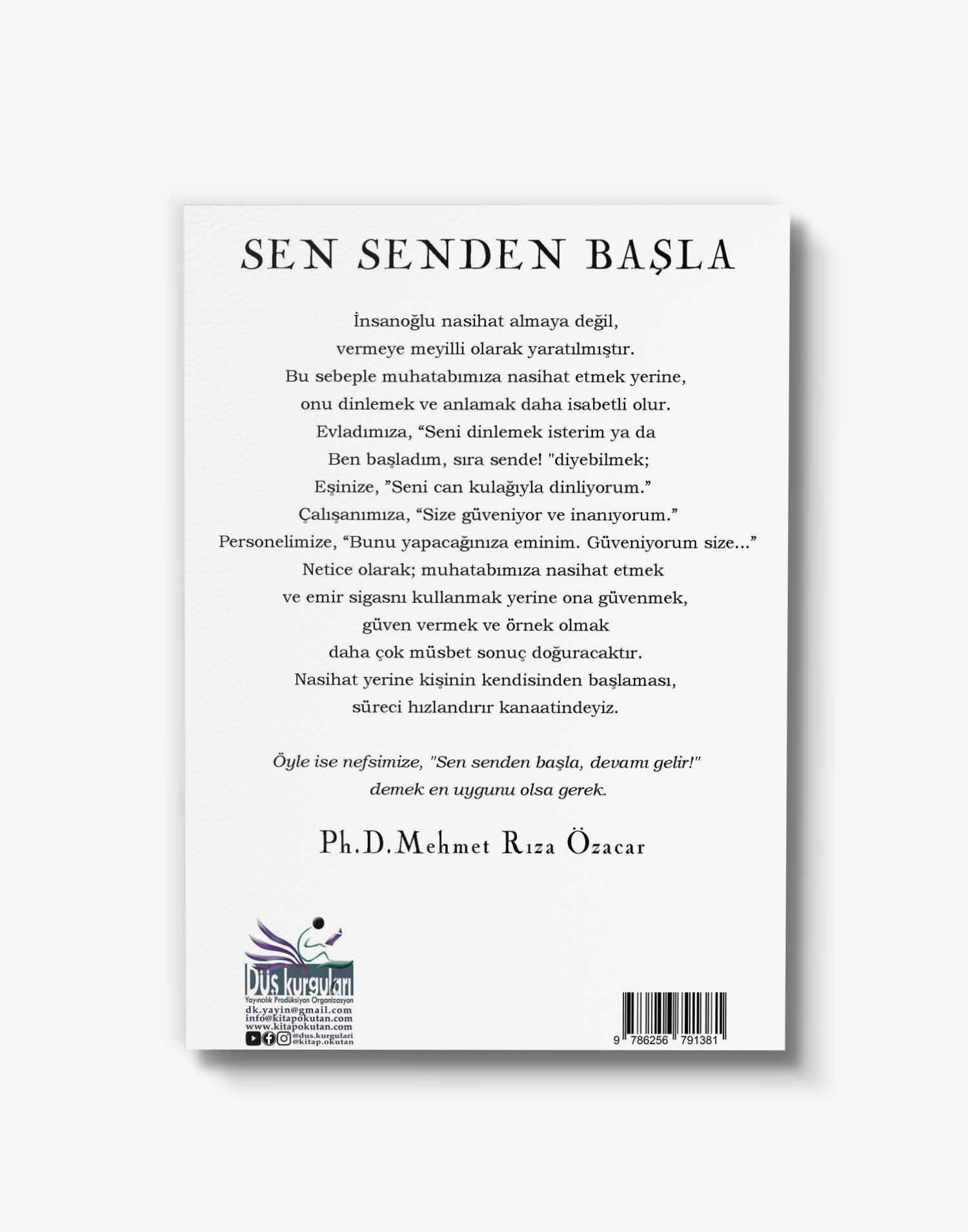 İnsanoğlu nasihat almaya değil, vermeye meyilli olarak yaratılmıştır. Bu sebeple muhatabımıza nasihat etmek yerine, onu dinlemek ve anlamak daha isabetli olur. Evladımıza, “Seni dinlemek isterim ya da Ben başladım, sıra sende! “diyebilmek; Eşinize, ”Seni can kulağıyla dinliyorum.” Çalışanımıza, “Size güveniyor ve inanıyorum.” Personelimize, “Bunu yapacağınıza eminim. Güveniyorum size…” Netice olarak; muhatabımıza nasihat etmek ve emir sigasnı kullanmak yerine ona güvenmek, güven vermek ve örnek olmak daha çok müsbet sonuç doğuracaktır. Nasihat yerine kişinin kendisinden başlaması, süreci hızlandırır kanaatindeyiz. Öyle ise nefsimize, “Sen senden başla, devamı gelir!” demek en uygunu olsa gerek.